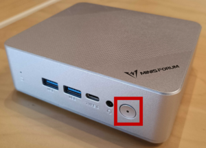 画像 1. ミニPC(赤枠部分は電源ボタン)以降、こちらのPCを「ミニPC」と呼びます。