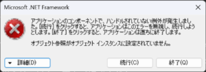 画像 12. オブジェクト参照エラープリンタとの接続ができない状態で印刷を実行すると発生することがございます。