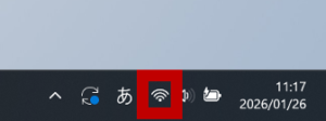 ミニPCにログインして、画面右下からネットワーク設定を確認してください。