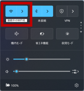 ネットワークに接続していない場合は、Wifi名の部分に「未接続」と表示されます。