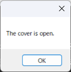 画像 9. プリンタのカバーが開いているプリンタのロール紙カバーが開いているときに表示されます。